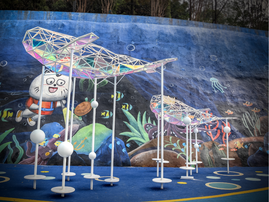 项目位于重庆市渝北区桃源大道桃源天地,甲方利用与桃源公园相邻的商业广场区域打造主题儿童游乐活动区,一方面吸引人流,另一方面也为周边居民带来丰富有趣的购物体验感。