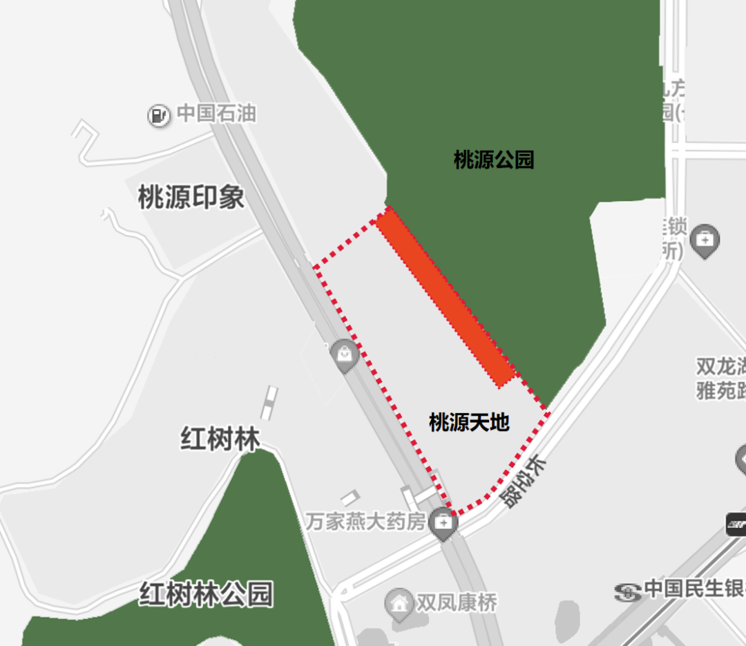 1.场地与桃源公园之间为高6-12m高边坡,场地与周边形成凹字型峡谷