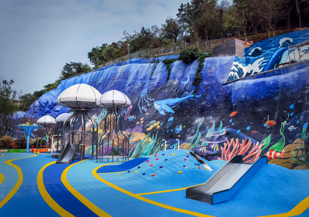 泡泡机、跷跷、蹦床、绵延起伏的山丘洞穴,海底世界可太有趣了!