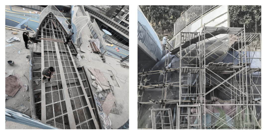 8月的重庆经历了罕见的酷暑及疫情防控,现场也存在与景观、边坡彩绘的交叉施工情况,但我们排除万难,砥砺前行,以完美呈现为坚定不移的使命。